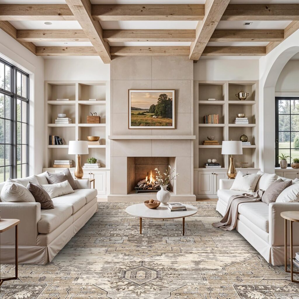 Fame Rugs Modern Oushak Rug 9×12, Vintage Turkish Lavender Oriental Antique Inspired Area Rugs, Washable Foldable Luxury Living Room Bedroom (386PBL, 9′ x 12)