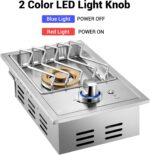 【Easy to Install and Use】Product dimensions: 20.4*12.6*8.6 inch (LxWxH); Cutout dimension: 19*11*5.3 inch (LxWxH); Removable drip tray ,lid, and grate included, easy to assemble and clean. Blue and red LED control knob lighting make it easier to cook and entertain at night.