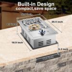 17,500BTU Liquid Propane Side Burner, Single Grilling Side Burners for Outdoor Kitchen, Convertible to Natural Gas, Duty Heavy 304 Stainless Steel, Drop-in Side Burner for Outdoor BBQ Grill Island