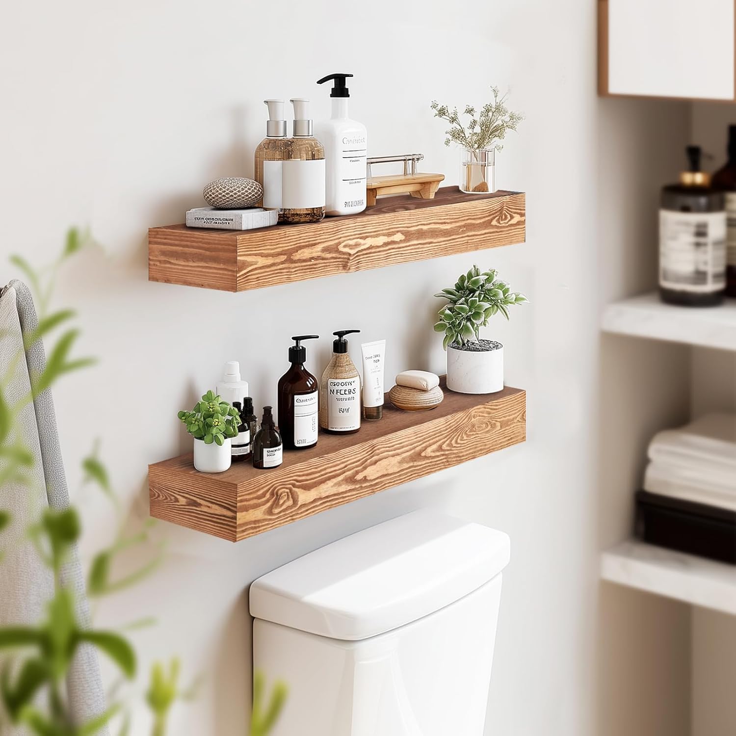 Functional in Every Room: Perfect for bathrooms, kitchens, bedrooms, and more. Use it to hold spices, toiletries, framed photos, or plants—these wall mounted shelves adapt to your lifestyle