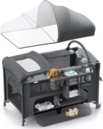 Review: I bought this bassinet after doing a lot of research. I didn’t want a wooden crib because I was worried my baby might hit their head on the hard railings, and I also didn’t want to use crib bumpers due to the risk of suffocation.This bassinet is larger than a pack and play, about the same size as a standard crib, but it has mesh sides that are breathable to reduce the risk of suffocation and soft enough to protect baby’s head. I also wanted something I could move around the house easily so I could keep my baby close while I cook or tidy up. This bassinet is portable and great for travel, too.The price is very reasonable. Assembly was relatively easy, and the instructions were clear. You can also use it as a bedside sleeper, which is a huge plus for me since my baby is exclusively breastfed, it makes nighttime feedings much easier.My baby loves the hanging toys; they keep him entertained. The changing table is sturdy and curved, which I really appreciate because it helps prevent baby from rolling off.One of my favorite features is the storage space underneath, I usually keep diaper and wipe boxes there. Also, customer service was very helpful and responsive when I had questions.I absolutely love this bassinet and highly recommend it!