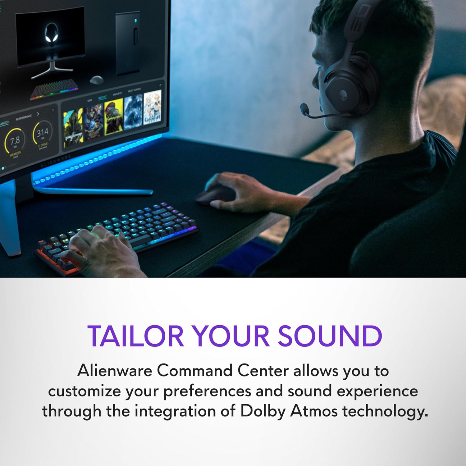 Alienware Pro Wireless Gaming Headset – Wired/Wireless, Bluetooth 5.3, 15 Minute Fast Charging, Audio Output 20 Hz, Battery Talk Time (ANC on) Up to 24 Hrs (Bluetooth), Dark Side of The Moon