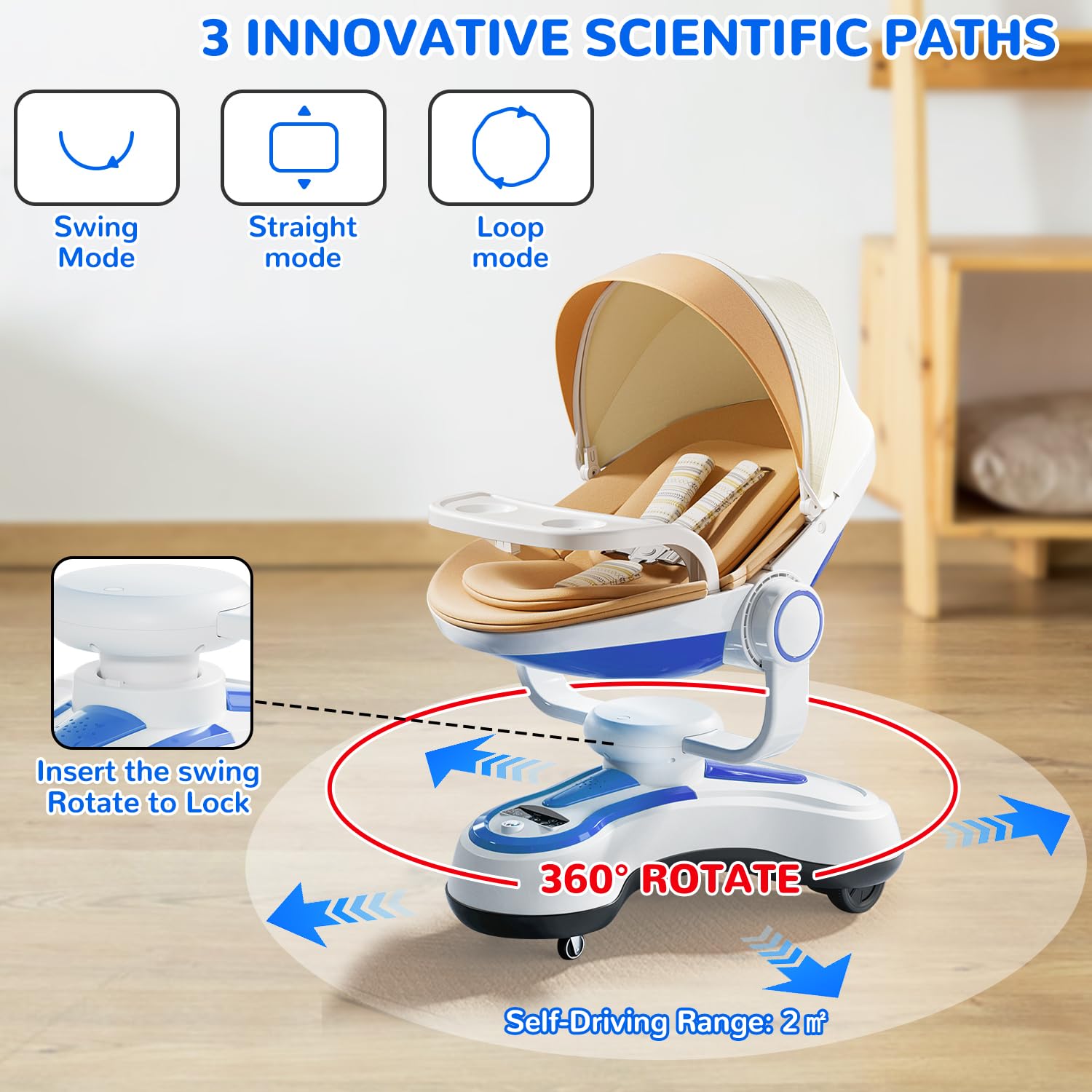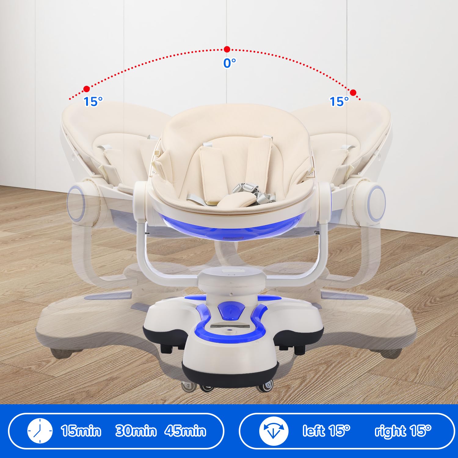 Safety Note: 44 lbs weight limit .The infant swing requires a clear 2㎡ (2 square meters) movement area.Ensure this space remains completely free of obstructions during operation.