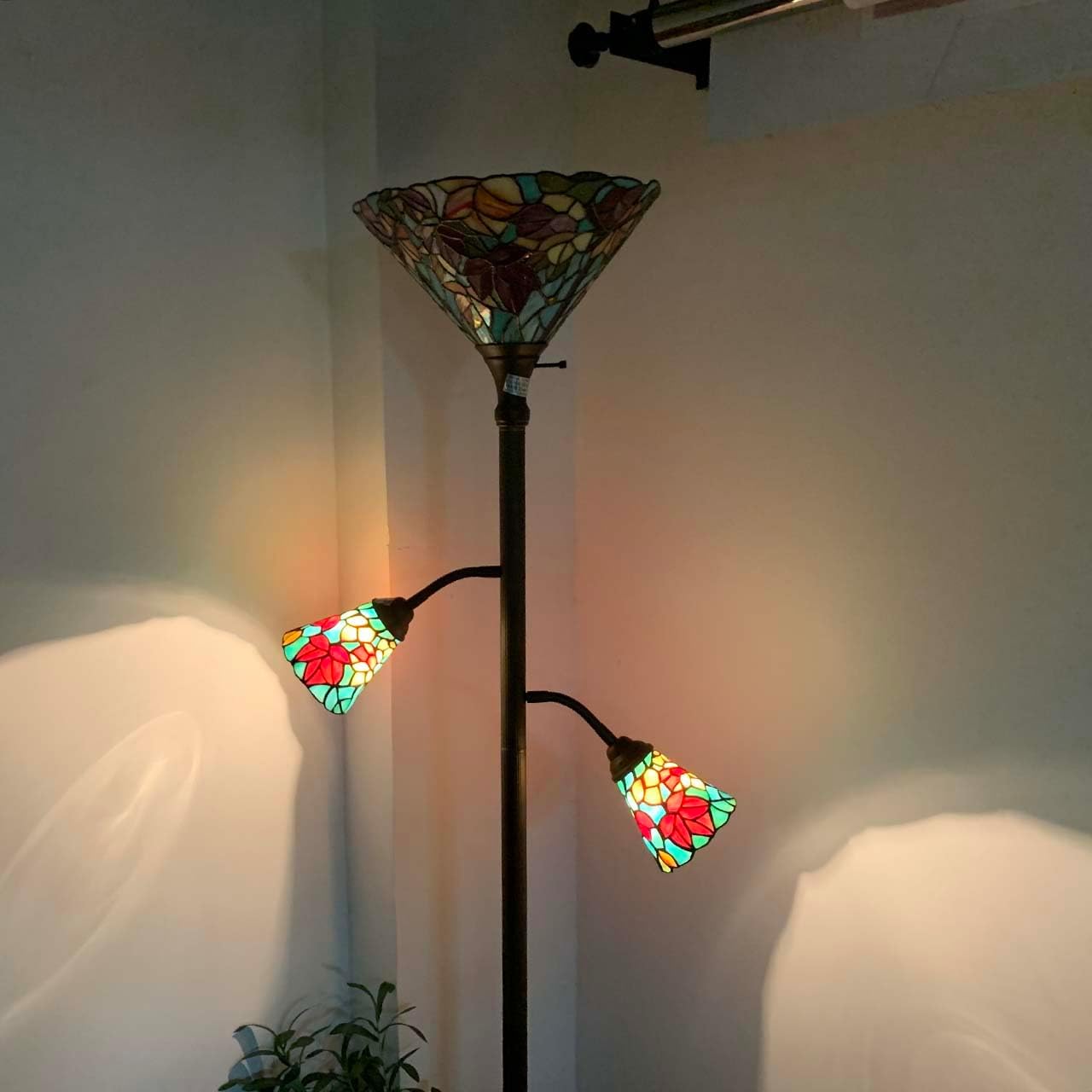 Red maples are fast-growing trees that usually reach 60 to 90 feet (18 to 27 meters) in height. The largest ones can grow more than 120 feet (36.5 meters) tall. Red maples are native to the eastern deciduous forest. They’re found from Maine west to Minnesota, south to Texas, and east to Florida.The maple symbolizes strength and endurance, and the reddish maple leaf symbolizes autumn. Depending on the species, its leaves may turn from green to yellow, orange, or reddish tones. This is a Tiffany-style maple leaf floor torchiere lamp. It is handmade by skilled craftsmen. The small lights on the side of the base can be lit separately, they can be used as reading or working lights. There is a 4-way rotary switch on the top. You can choose Main Lamp On, Side Lamp On, or Both On according to your needs. Additionally, we added an in-line footswitch that can turn the entire lamp on and off. the lamp base is heavy and durable, the color of the stained glass looks stunning when you light it up. This lamp is not only an amazing night light but also great artwork in the daytime. you definitely will receive many compliments.BIEYE is a well-known worldwide brand of Tiffany-style stained glass products, and we specialize in designing and manufacturing Tiffany-style lamps, window panels, and other stained glass artworks.