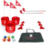 Review: So much fun! I got this from my son for his birthday. He’s a grown man and I couldn’t wait to play! He has a yard so I thought it was perfect and he has been using it with his friends for the past month. Everybody’s having a blast with it I got the original bucket golf because the buckets are easy to set up and easy to take with you if you wanna go to the beach or a park. I purchased the set with the clubs so no one had to use their own golf clubs.