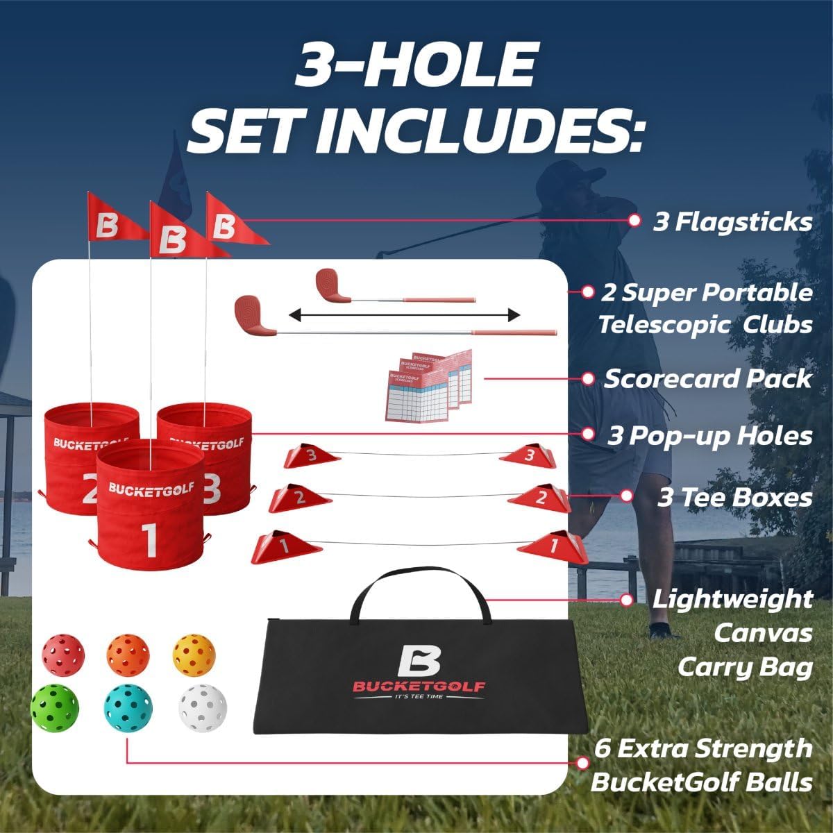 bucketgolf Original Game 3 Hole Travel Set with Clubs – #1 New Backyard Golf Game for The Yard and All Ages Adults and Kids. Beach, Park, School. (2 Right Hand Clubs)