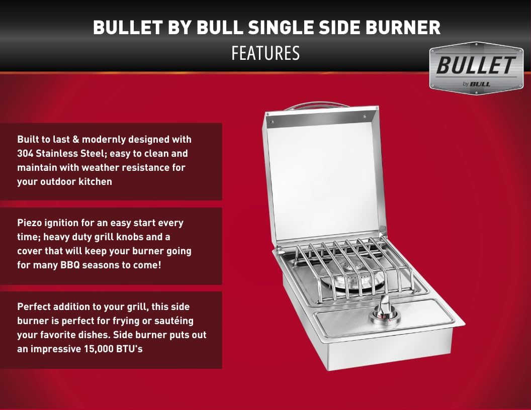 Bullet by Bull Classic Single Side Burner Stainless Steel Drop in for Outdoor Kitchen BBQ Island Liquid Propane