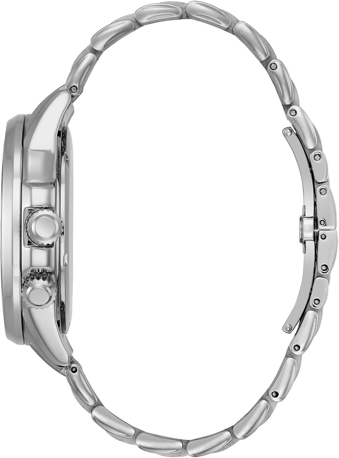 Review: This is a large men’s watch with a 44 mm diameter dial, polished stainless steel.I’d say it’s more of a dressy/office watch, but it could do casual.This is not a chronograph, if that’s what you’re looking for, this isn’t it.The watch has 3 working sub dials, the sub dial at 3 O’clock shows the date, the sub dial at 6 shows the hour in 24 hour format, and the sub dial at 9 shows the day.There are two crowns, one at the normal position to adjust the time and the sub dials, and one at the 4 O’clock position to rotate the inner scale to give you the time in a 2nd time zone.Lots to look at on this watch:If you look closely, you’ll see the crisp white dial has two different textures on it and 3 different levels.The rings on the sub dials have tiny little metal edges around them and the indices on the chapter ring are chamfered.The watch is good down to 100M which means you an go swimming and snorkeling with it, but it’s not a dive watch.The price might seem a bit steep, but in my opinion, you’re getting a lot of watch for the money.Likes:Keeps great time (expected since it has a quartz movement) and with Eco Drive, you shouldn’t have to worry about a battery (capacitor in this case) for close to a decade.The more time you spend with it, the more you see all the detail Citizen put into the watch.The navy blue leather strap goes with the blue hands and the deployment clasp is well done and detailed, looks like it was forged and not just stamped.The watch looks great on the wrist and the blue watch hands change shades as the light hits them.DIslikes:The deployment clasp can dig a bit into your wrist if you adjust the strap to that it’s really snug.The crowns don’t have a stamp on them, they are blank, which is odd for a watch costing this much.Reading the Hour and the Day dials takes a little practice.Really, not much to complain about. It’s a great watch, just different enough to be interesting.