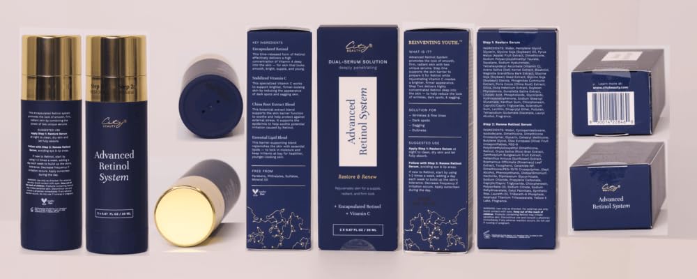 City Beauty Advanced Retinol System – 2 Anti-Aging Face Serums – Retinol & Vitamin C – Firm, Smooth & Brighten – Solution for Wrinkles, Dark Spots, & Sagging – Cruelty-Free Skin Care