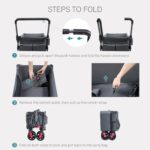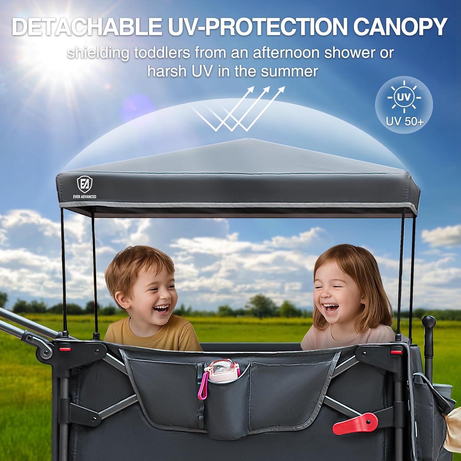 EVER ADVANCED Ultra-Compact Wagon for 2 Kids, Travel Foldable Push Pull Wagon Stroller with Removable Canopy, Adjustable Handles & Harnesses, Grey