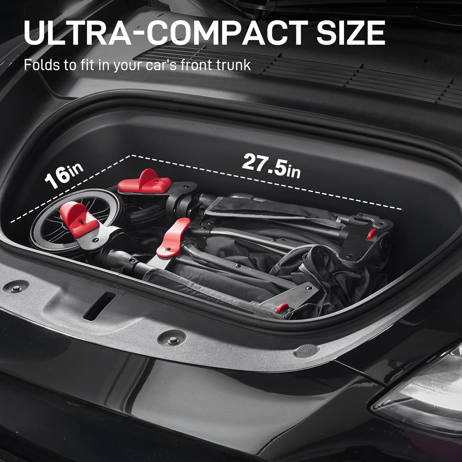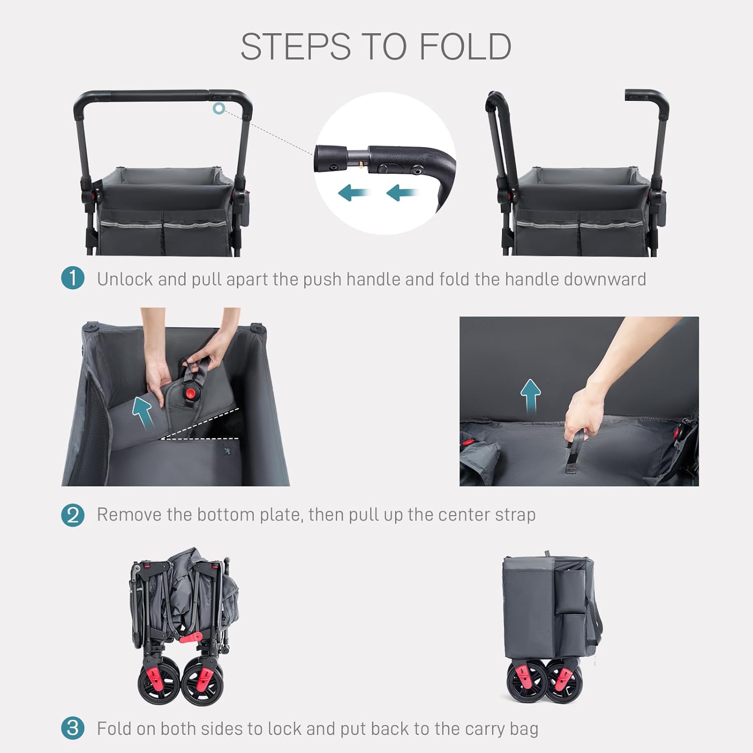 COMPACT FOLDED SIZE: This lightweight toddler wagon can be folded by one-step in size 27.5″ x 9″ x 16″ which is much convenient for family to travel. The wagon only weighs 30.6lbs which is easy to transport and carry with our carry pocket.