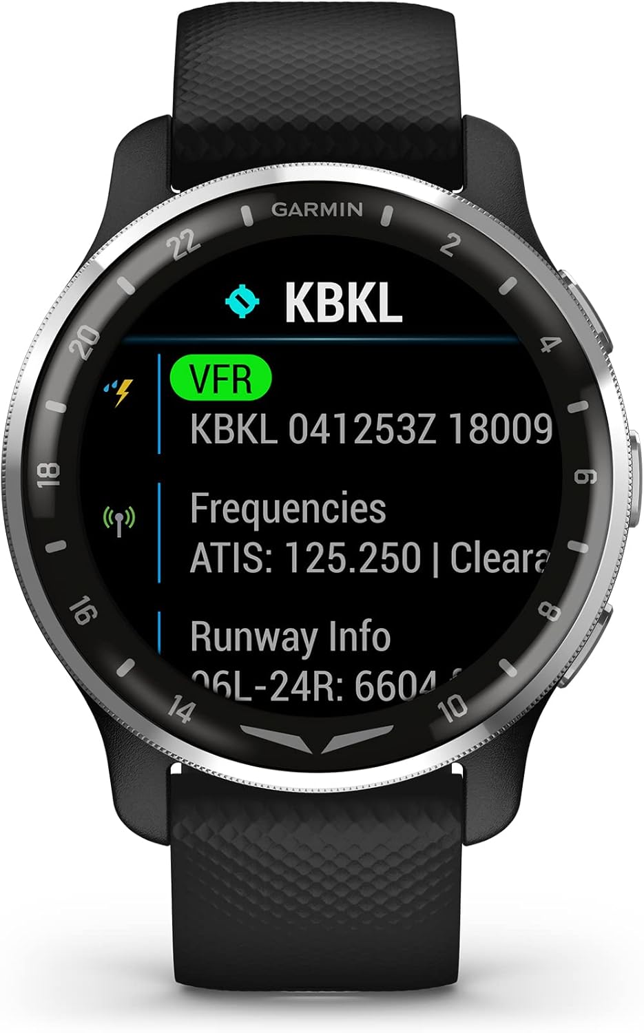 Navigate your day with D2™ Air X10. This GPS aviator smartwatch has piloting tools you’ll want preflight, in-flight and postflight — including aviation weather (when paired with your compatible smartphone), navigation capabilities with the worldwide aviation database, airport information and automatic flight logging. It offers advanced health and fitness features to help you track your wellness. When paired with your compatible smartphone (certain smartphones not compatible), you can enjoy the convenience of making and taking calls right from your wrist, and using your smartphone’s voice assistant to respond to text messages. Switch up your activities with more than 25 built-in sports apps. Music storage lets you bring your favorite tunes along. And get even more functionality on the wrist with Pulse Ox monitoring (not available in all countries), connectivity with the Garmin Pilot™ smart-device app, alerts, timers and more — plus battery life of up to 7 days.