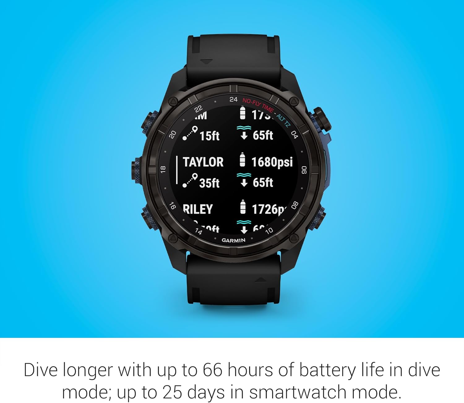 Multi-band GPS technology provides superior positional accuracy while you’re out on the water, and built-in ABC sensors — including an underwater compass — help navigate every part of your dive from entry to exit (GPS tracking does not work underwater)