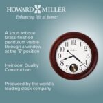 Howard Miller Griffith Wall Clock – Large Analog Wall Clock with Quartz Movement and Pendulum, Wooden Frame, Glass Crystal Shields, Battery Operated – for Living Room, Office, Kitchen, and Home Décor