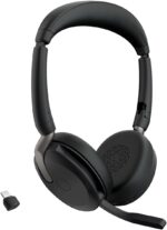 Review: Was looking for:- All day comfort (on-the-ear, but the cushions are amazingly soft)- Cool on the ears- Good noise control on the mic- Good sound on the mic- Portable- Reliable connectivity (either through the Bluetooth dongle or USB-C, both work great!)- Long battery life- Physical mute (you fold up the mic)- Comfort is good while wearing glasses.The Evolve2 65 Flex headphones delivered!Bonuses:The audio quality is pretty good, enough to enjoy music if I have a break. The (wool?) case is very convenient and seems durable (had it for a month or so of hot-desk use (where I pack-up every day), still looks new). The bluetooth dongle is small and very effective (the head-set prefers it to the phone, so if my laptop is on, that’s where my audio connects even if my phone is on). The “Soundscape” included in the phone app (built-in looped sounds: rain, thunder, waves, fans, waterfall, etc.) is a wonderful calm oasis in the middle of a busy day or noisy room.It does all the things I need it to.Improvements? They could be a -little- more comfy if they were around the ear and not on the ear. The noise cancelling is so-so (I mean, they are on the ear, so they have that to deal with. Not as good as Sony over the ear or in-ear (both of which I own from the 2023 gen of those products)). I usually set them to “off” and that actually blocks more of the chatter in the room than the ANC. YMMV.Overall love them though. The Sony products I mentioned did not give me the comfort or reliability I needed for a full work day. The Jabra headset definitely does.Highly recommend for a long day at an on-the-phone job. (I am on the phone 90-100% of an 8 hour day 5 days a week) in an office. They are not tight enough for on-the-go work I would say. So if you are on flights/moving around a lot, these likely would slip off (again, they are on-the-ear).Really wish I could give 4.8, I think that’s more accurate. They are not perfect, but they do the job very well so gave 5 because that’s closer to how I feel about them.