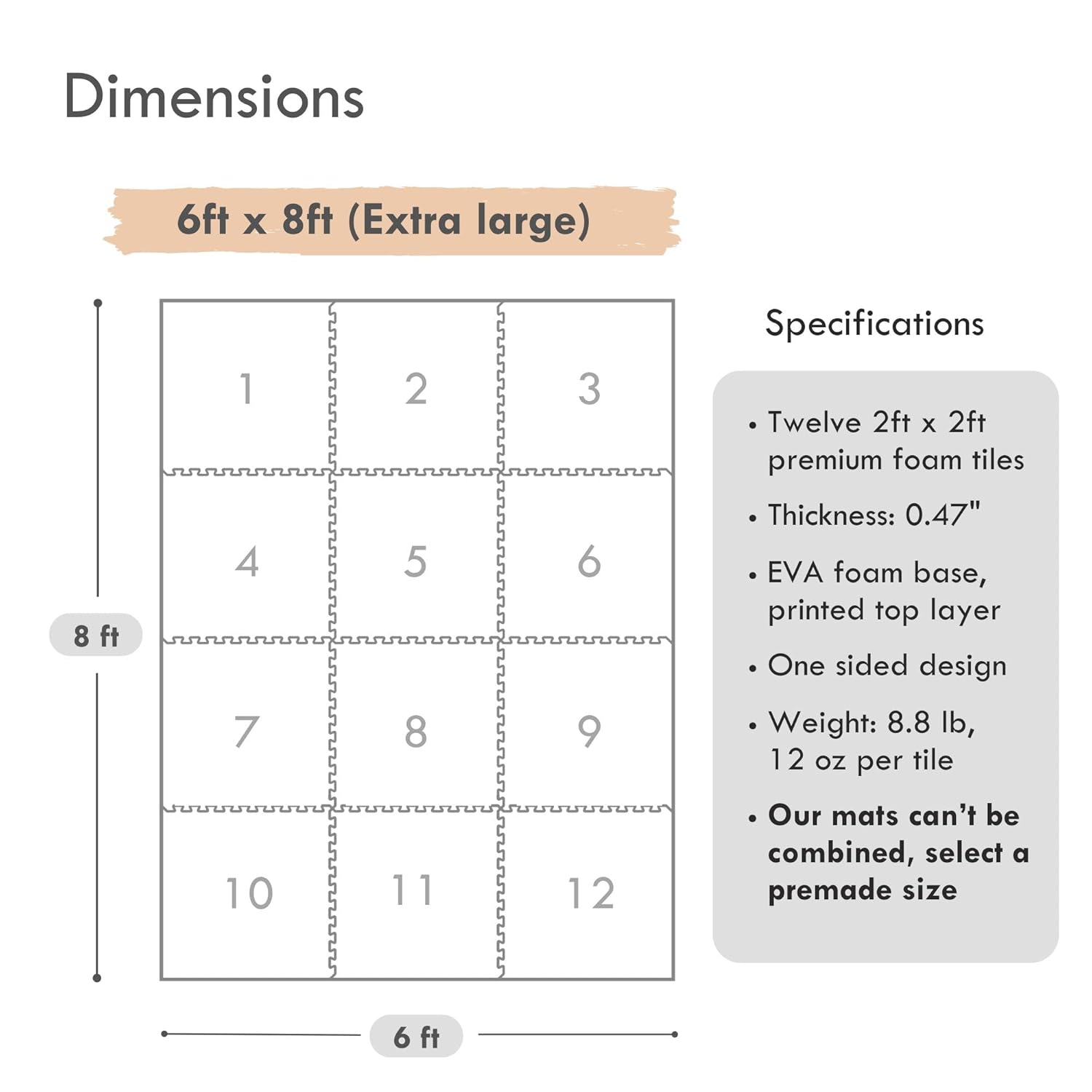 PREMIUM SAFETY: Comes with large two x two foot interlocking floor tiles. We are the ONLY foam puzzle brand that does not have any loose edges that can be peeled off. This means increased safety for your little one and quicker assembly.