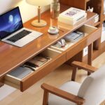 Mid Century Modern Desk with Storage Drawers, Home Office Computer Desk Solid Wood Writing Desk Study Table Workstation(47 Inch, Natural)