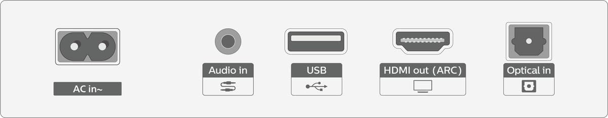 With its immersive audio technology and ultra-compact wireless subwoofer, this super-slim soundbar will fill your room–without taking over the room. It partners perfectly with Ambilight TVs to dial up the thrills whatever you’re watching. Immersive sound for everything you love • Dolby Atmos. Immersive cinematic sound at home • DTS Virtual:X for immersive 3D sound in any room • Four EQ sound modes and dialogue enhancement Music and movies • Roku TV Ready™. Simple setup. One remote. Quick settings. • Bluetooth 5.3 with LE Audio support • Connect your favorite sources for bigger sound • HDMI eARC, optical connection, AUX-in, USB • Philips Home Entertainment app • Control your soundbar and TV with a single remote Philips 2.1 soundbar. Ambilight TV Surround. • 2.1 channels. Wireless subwoofer for deeper bass • Room-filling sound. 320 W max • Ultra-slim design, perfect for low-slung Ambilight TVs