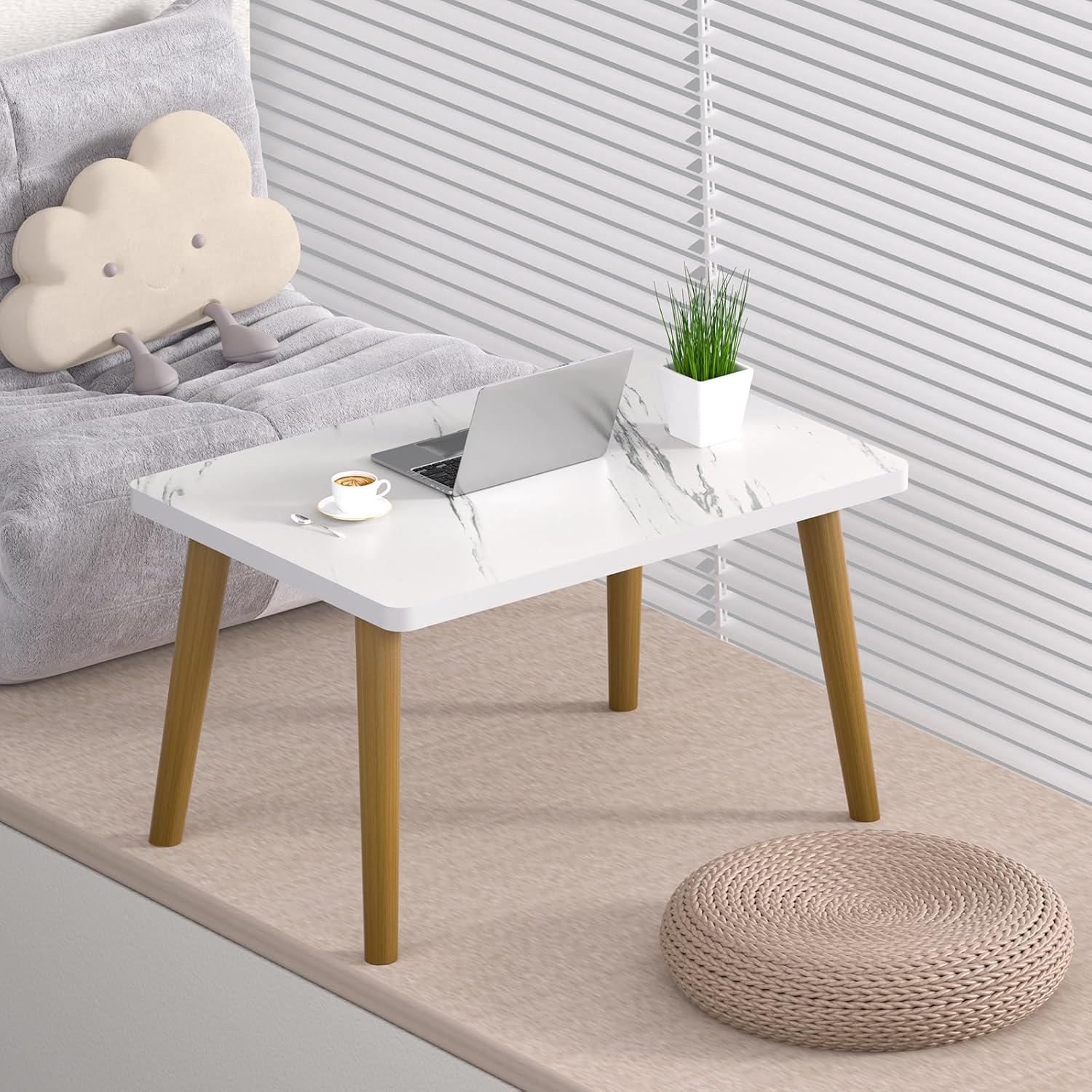 Small Coffee Table for Small Space, Low Table, Floor Table Desk for Sitting on The Floor, Storage Living Room Furniture, Tatami Tea Tables with Solid Wood Legs, Home Office, Farmhouse, Rectangle White