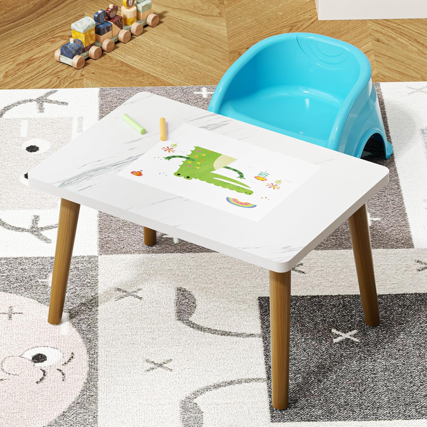 【Durable & Stylish Construction】 Crafted with a high-density board top and solid wood legs, this natural wood coffee table combines durability with a modern, minimalist look. Its anti-slip pads provide stability, making it a reliable choice for daily use as a dining table, outdoor table, or center table for living room