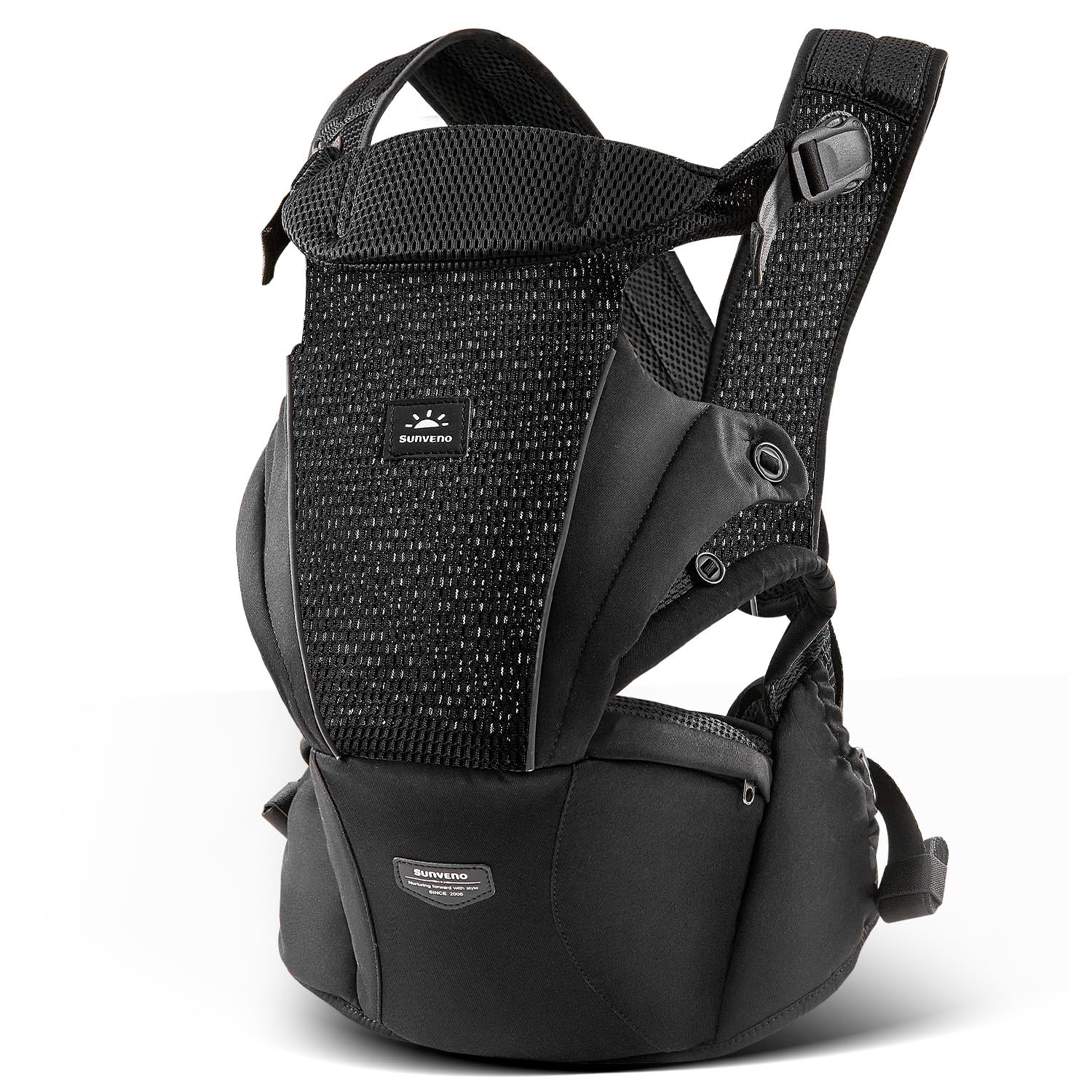 SUNVENO Baby Carrier for Newborn to Toddler – CPC-Certified Breathable Mesh Hip Seat Carrier, Supports 7-45 lbs for Front & Back Carry with Adjustable Waistband, All-Season, Black